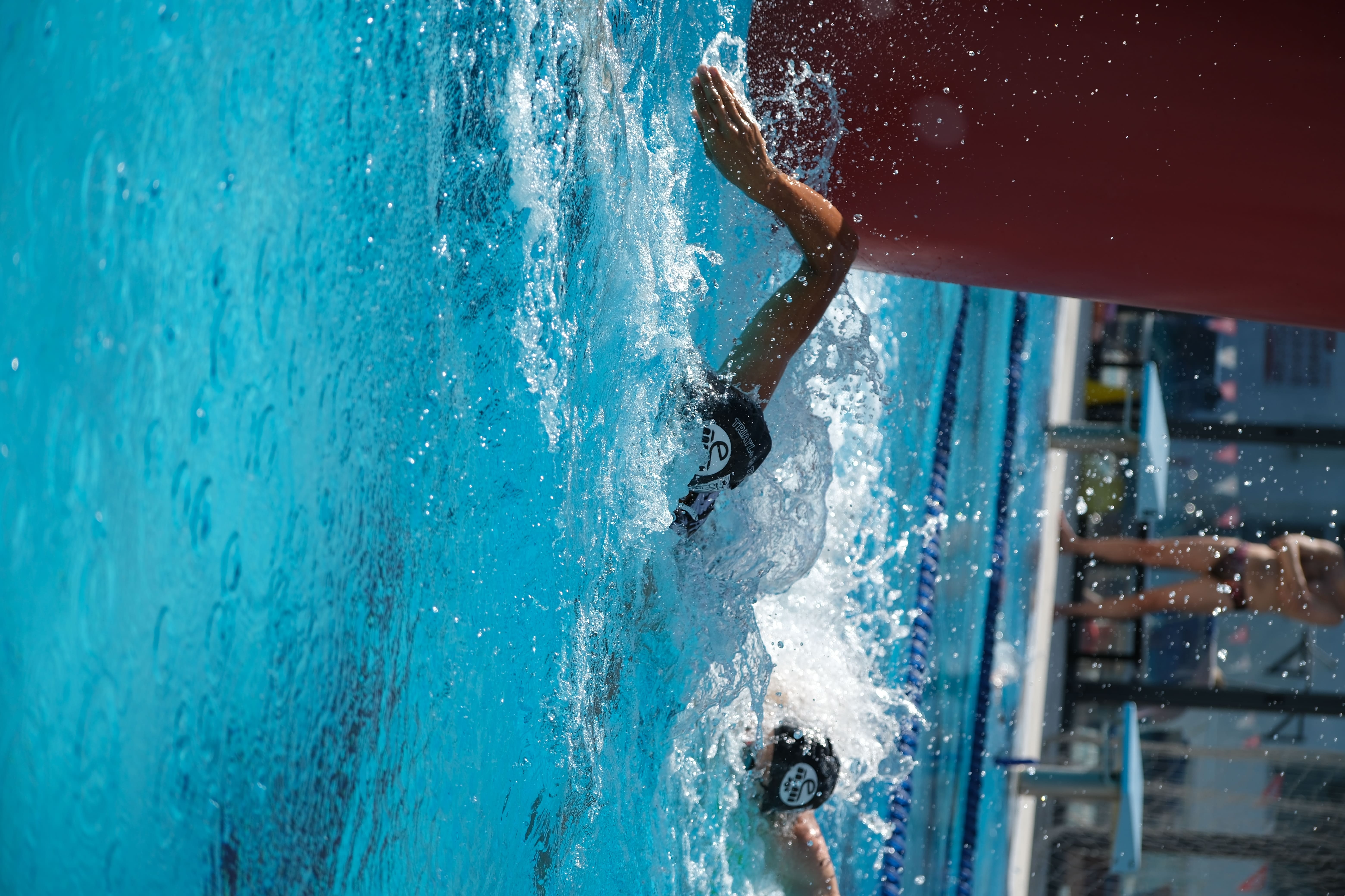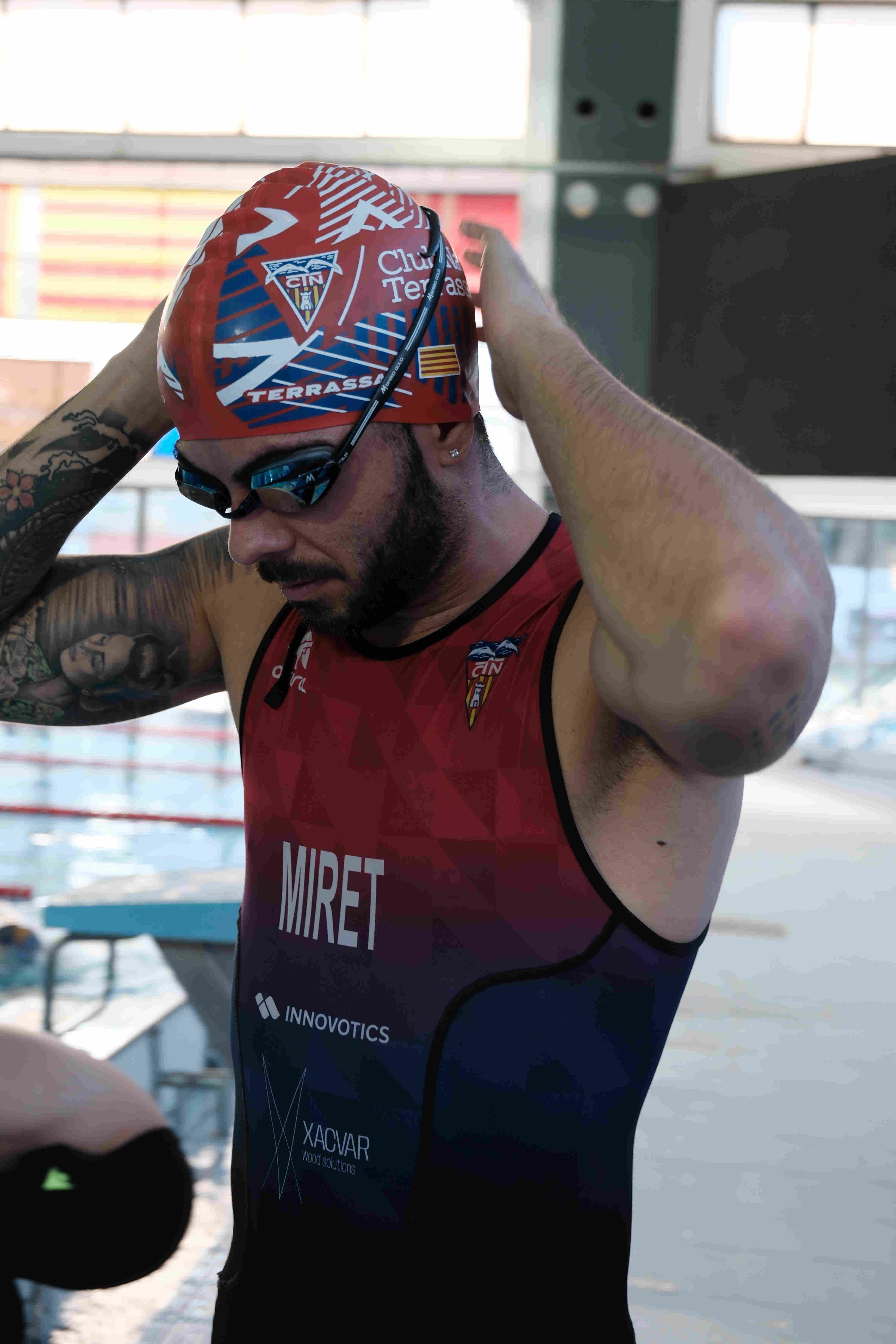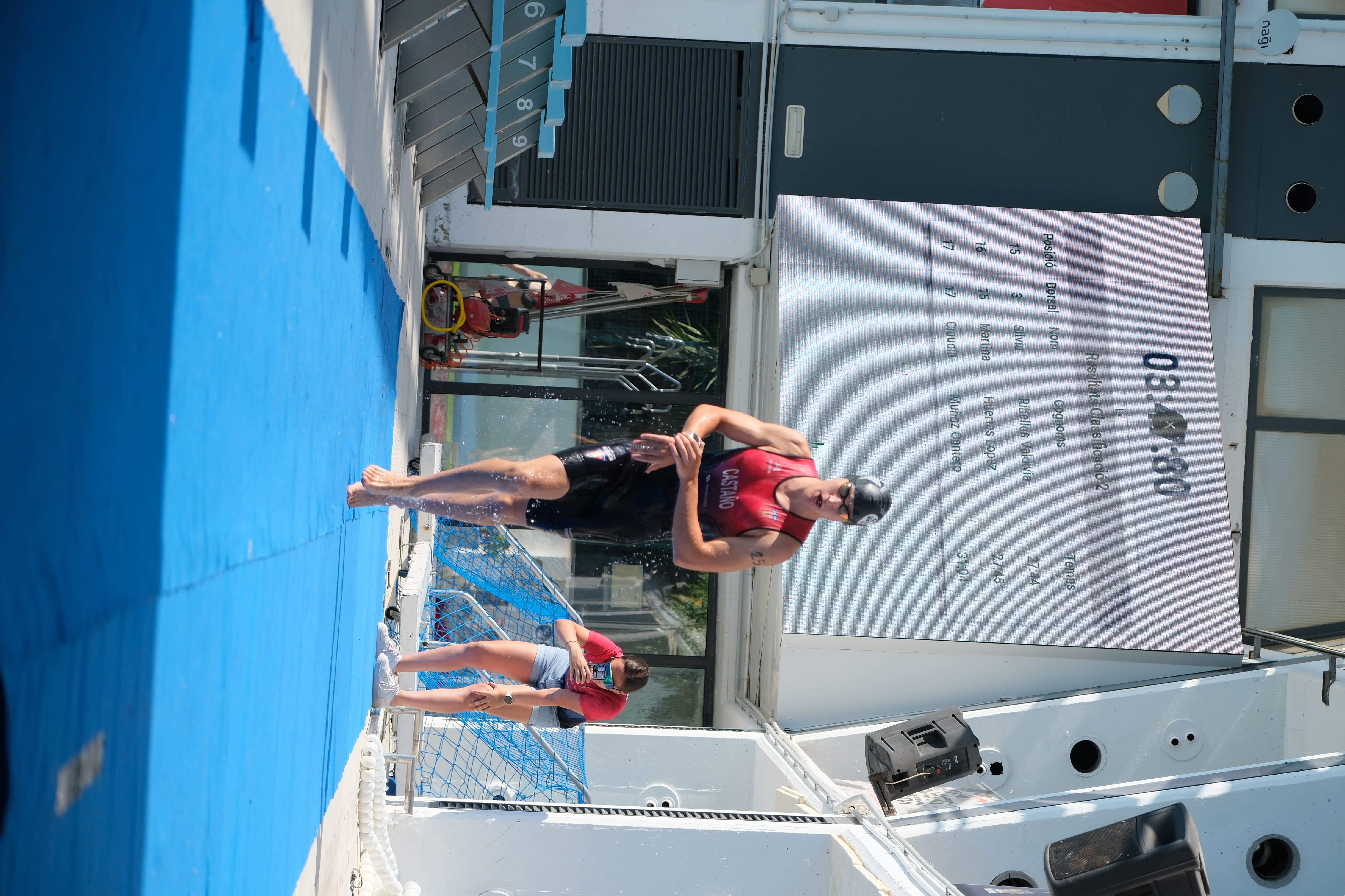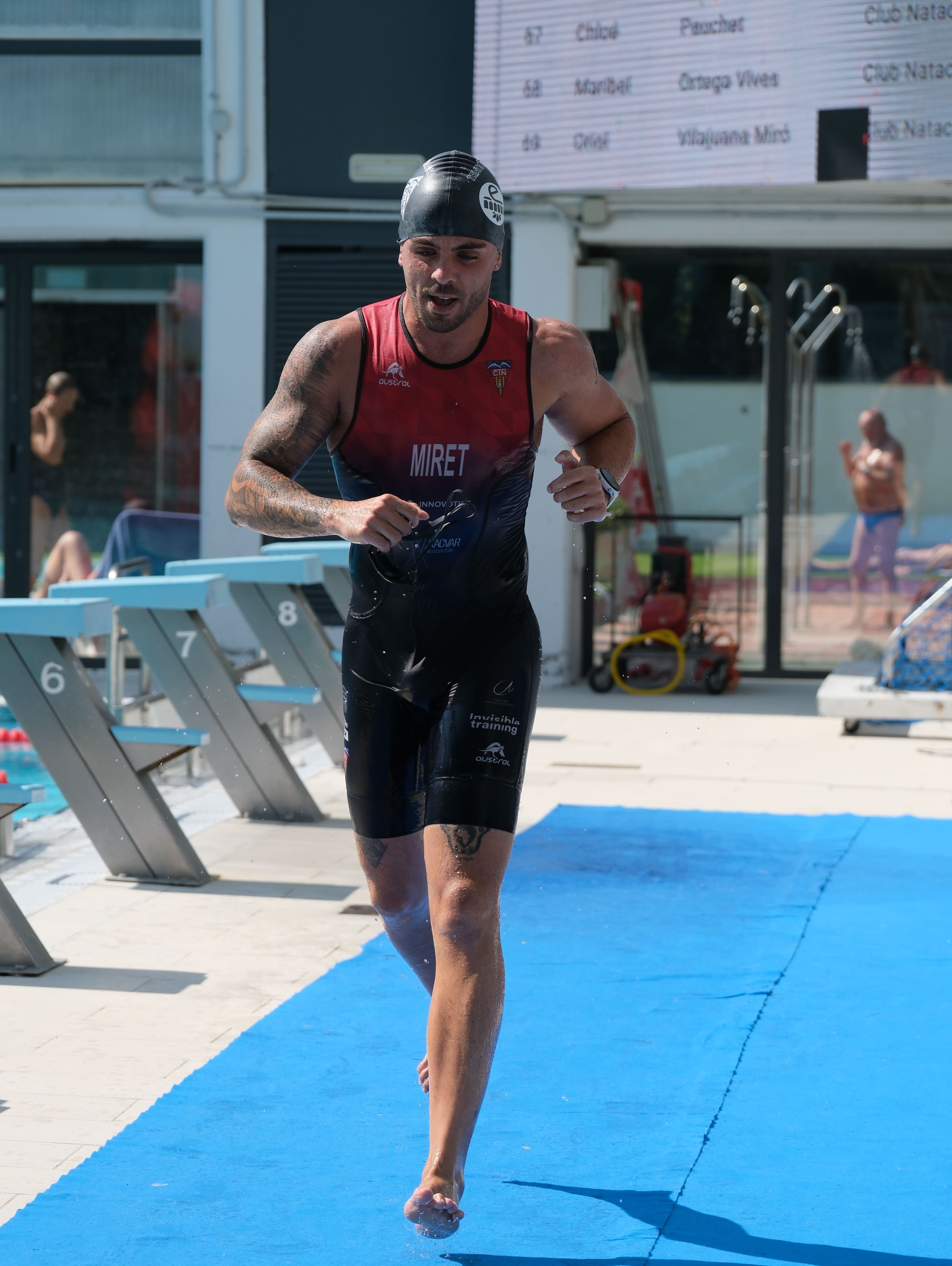 El segment de natació es realitza en una piscina coberta de 50m. Els participants han de seguir un circuit marcat amb boies fins a completar una distància de 300m.
